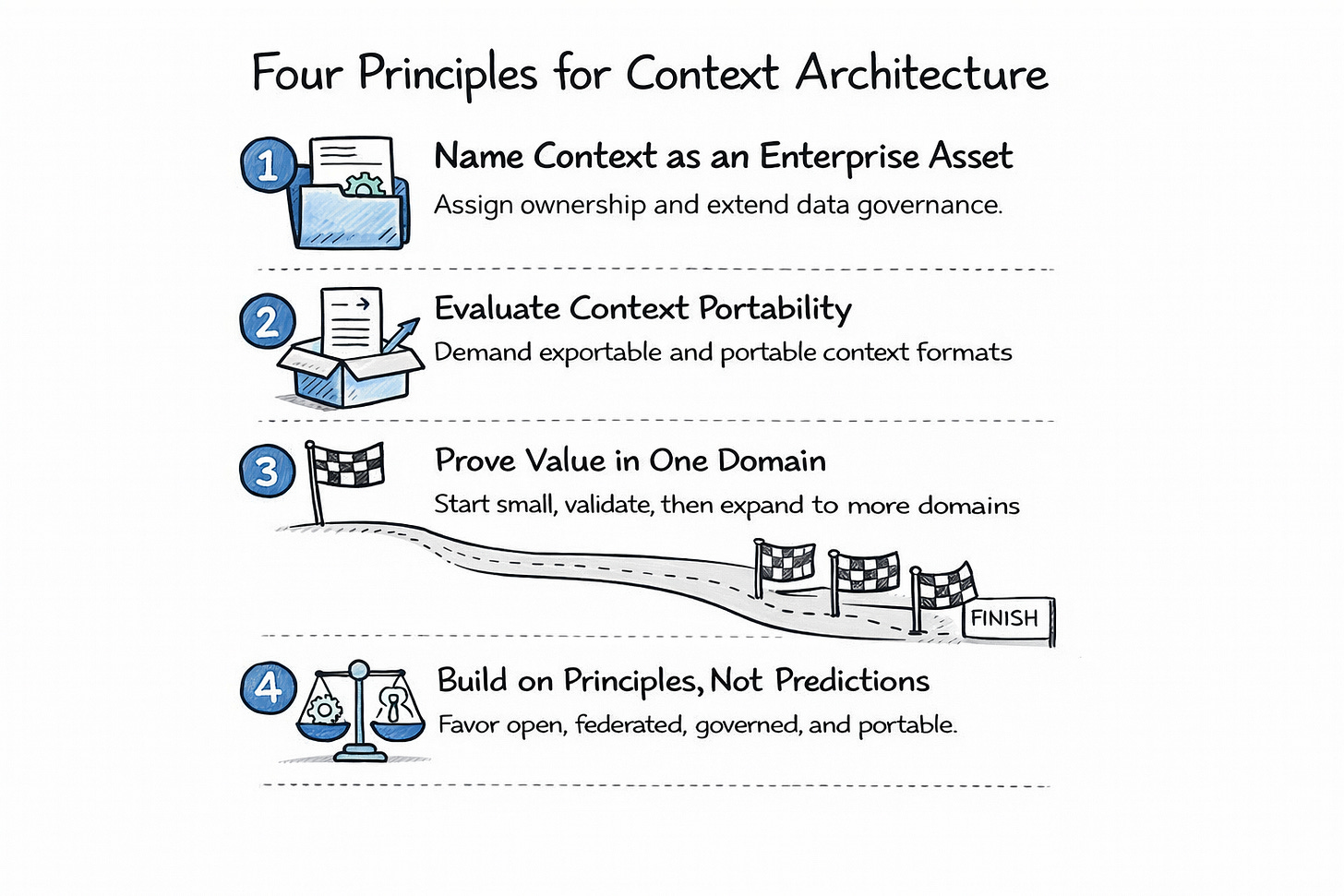 Permalink to “Four principles to make context architecture work”If you’re a CIO, CDO, or CDAO making architecture decisions right now, here’s what I’d recommend keeping in mind: